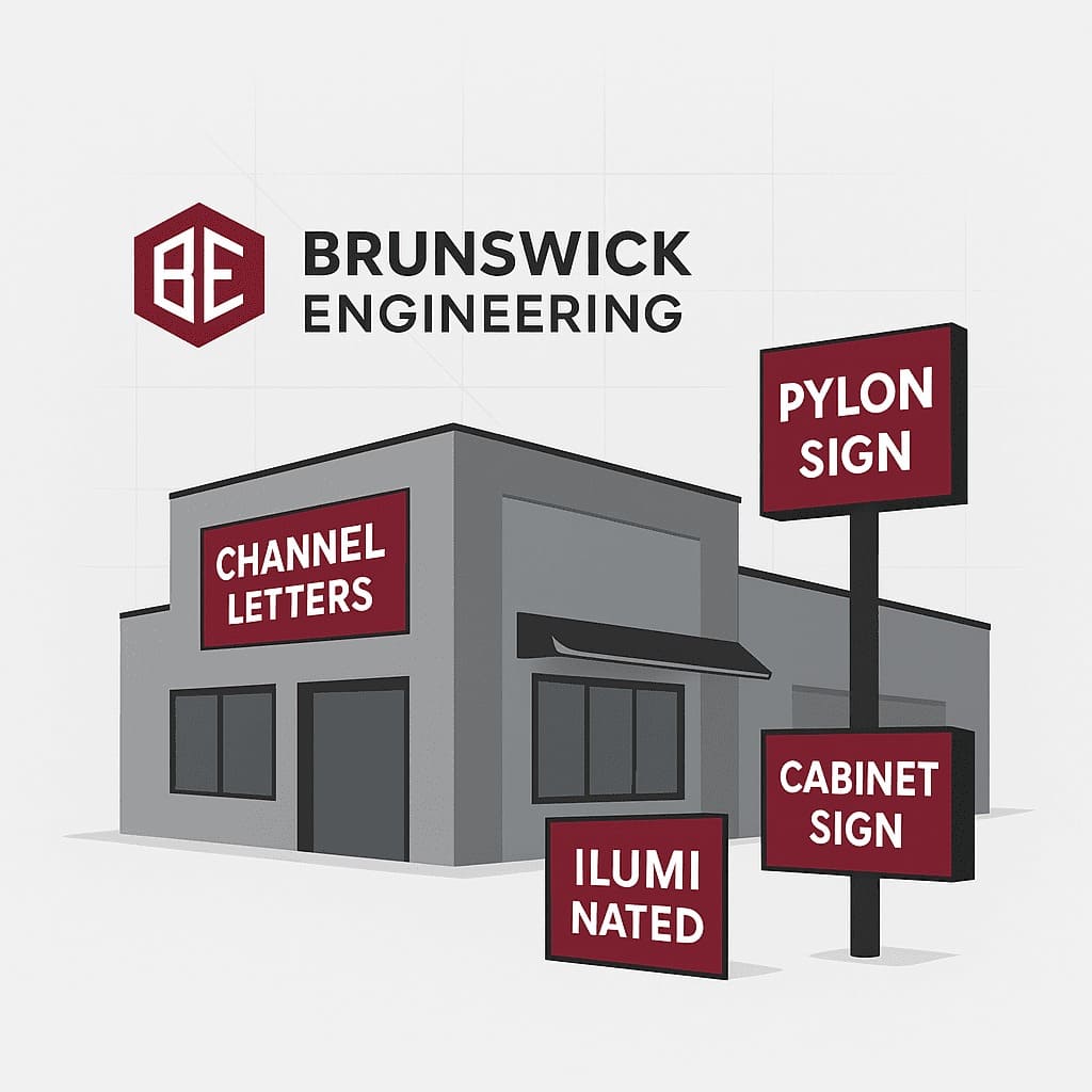 Brunswick Engineering specializes in sign engineering Stamped drawings with next-day turnaround for standard signs. We provide signed and sealed footing details and structural drawings for a wide range of signage types, including: